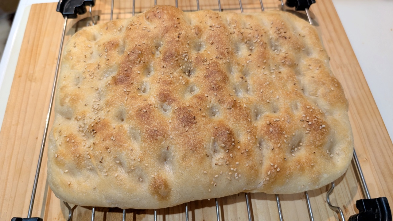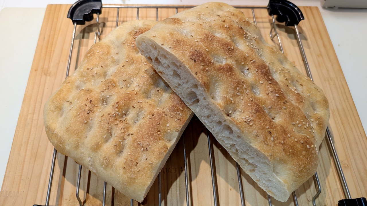 今回焼いたフラットブレッドはサワー種を入れているので、チャパティのように平べったくはなく、フォカッチャに近いような見た目のパンになります。