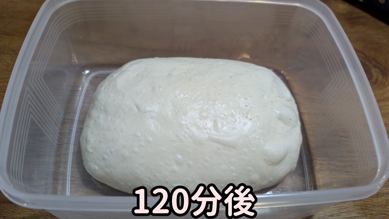 - 28℃で180分一次発酵を行います。30分、60分、120分経過時にパンチを行います(計3回)。