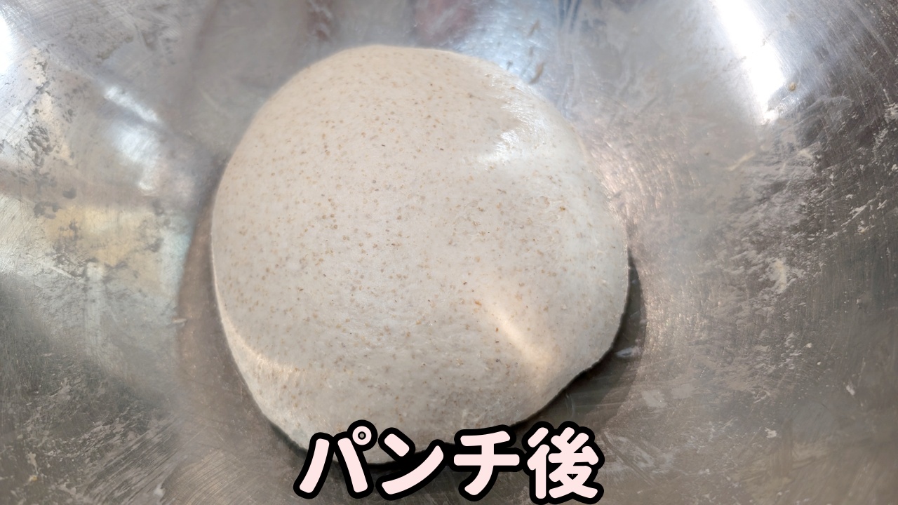それに対し、今回は60分間の一次発酵で、30分経過時に1回だけパンチを入れています。