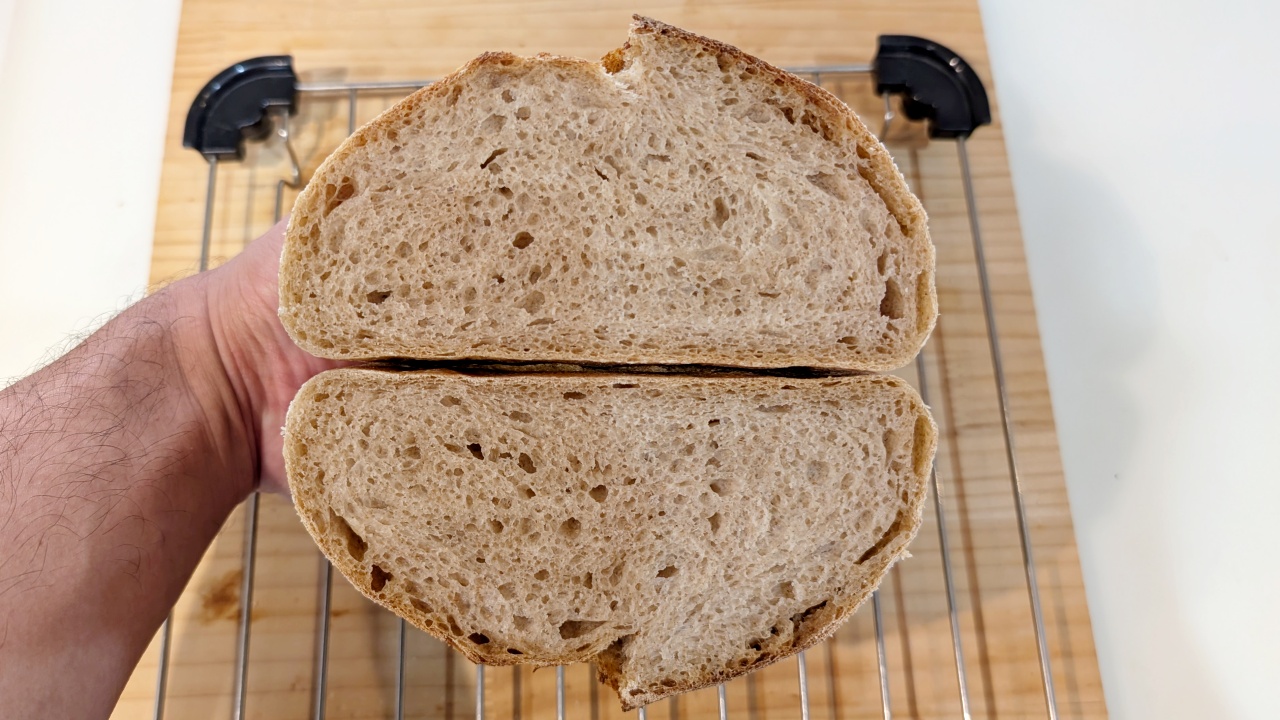 1回目は丸形で、パン用酵母(イースト)とサワー種を併用していました。2回目はなまこ型で、パン用酵母は使わず、サワー種のみを発酵種として使用しています。