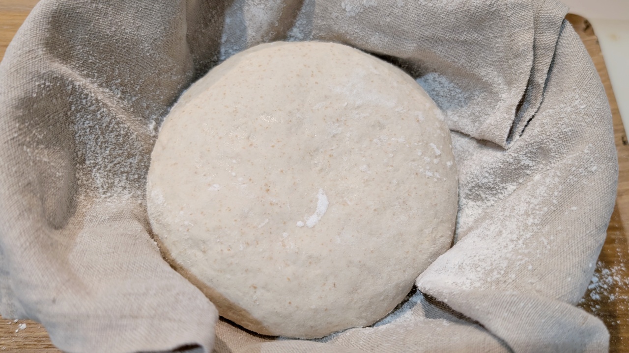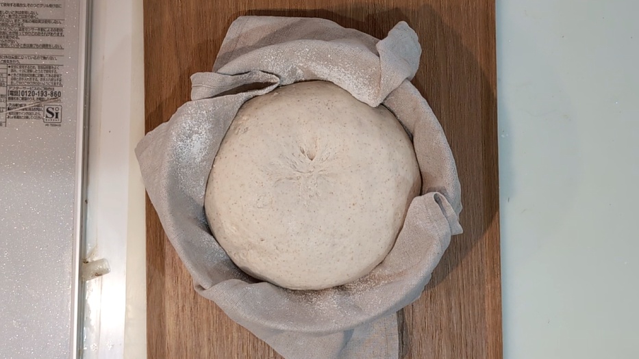 - ボウルに薄手の布を敷き、粉を振りかけます。閉じ目に粉をつけ、閉じ目を下にしてボウルに入れます(表面にカットを入れる場合は閉じ目を上にします)。