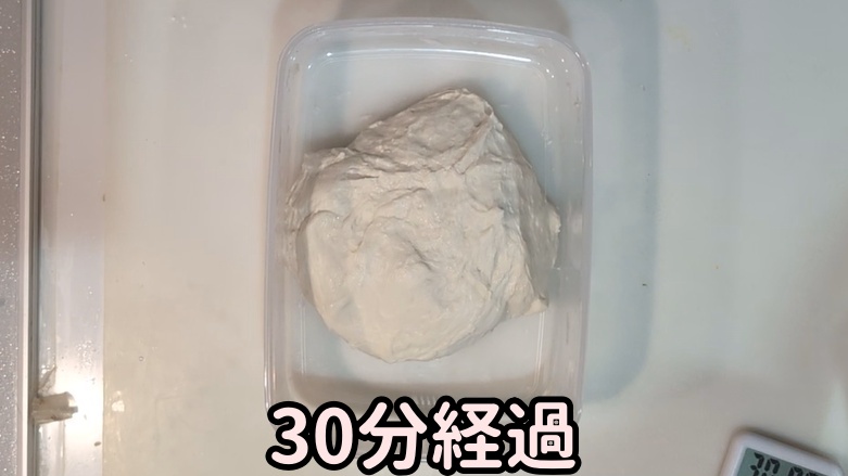 - 冷蔵庫に入れて12~16時間冷蔵発酵を行います。
