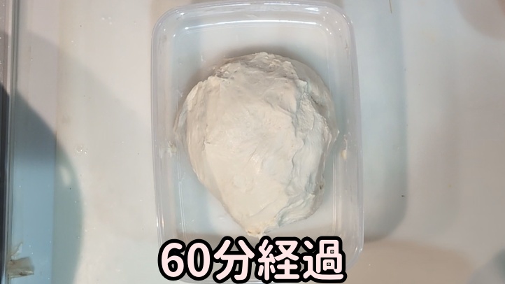 - 冷蔵庫から生地を出し、室温に約60分おいて生地温度を上げます(復温)。