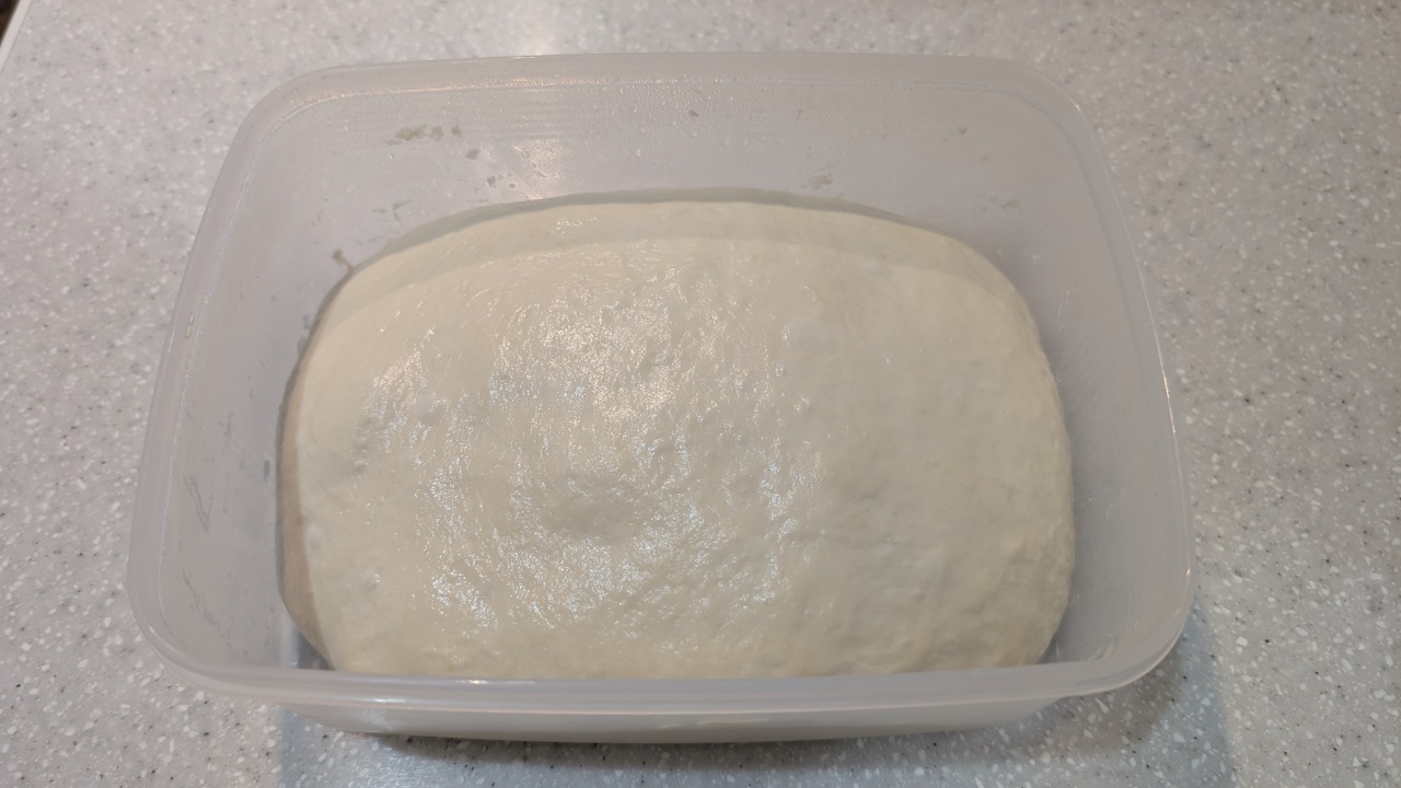 生地作りはタッパーに材料を入れて、ゴムベラで混ぜるだけです。後は発酵とパンチを繰り返して生地を作っていきます。リュスティックみたいな製法ですね。