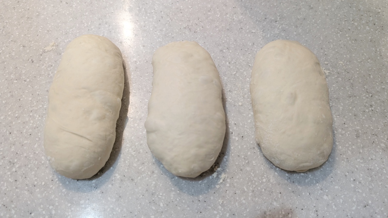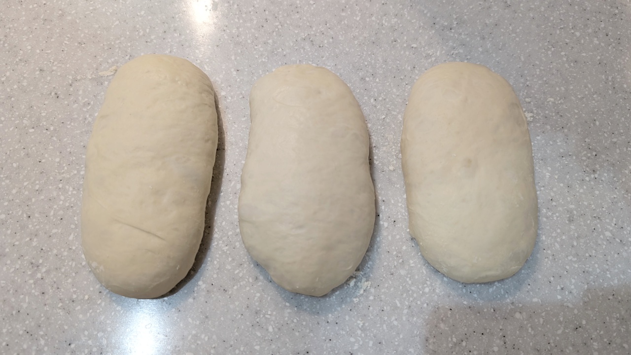 - 生地を3等分します。表面がきれいに張るようにまるめ、楕円形に整えます。